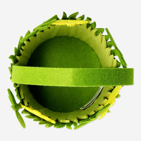 This Easter bag with felt chicks is a charming and festive accessory for holiday celebrations. Made from soft polyester felt, it features a playful green grass design with cheerful yellow chicks scattered around, bringing a lively springtime feel. Measuring 15 x 24 x 14 cm, this bag is ideal for Easter egg hunts or for holding small holiday gifts. The handle makes it easy for little ones to carry, adding excitement to Easter festivities. Whether you use it as a decorative item or for gathering treats, this versatile bag is a perfect addition to any Easter celebration, adding a touch of holiday joy to your egg hunt or gift-giving.