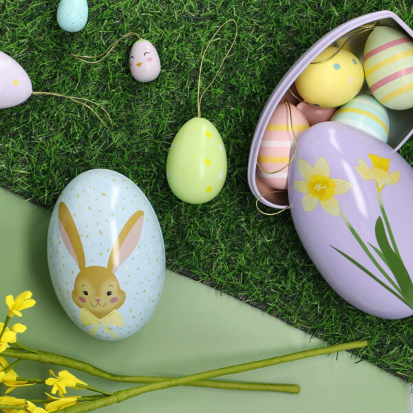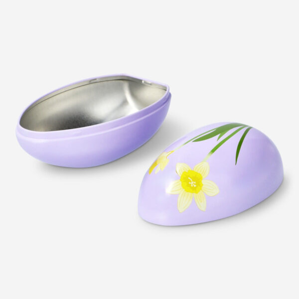 Introduce a burst of purple to your kitchen with our bestselling large Easter egg container, measuring 15.9 x 7.8 cm. Crafted from metal, this festive egg showcases a charming flower on the front, making it an ideal storage solution this holiday. Perfect for gifting as an Easter egg filled with treats or for use in an egg hunt. Suitable for food, this delightful container adds both practicality and seasonal flair to your home and kitchen.