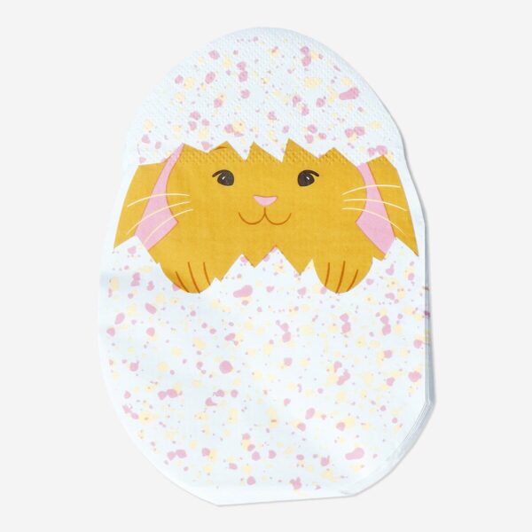 Bring a festive charm to your table setting with these egg-shaped napkins featuring an adorable rabbit design. Perfect for Easter gatherings, these versatile napkins are ideal for both everyday dining and special holiday meals. Measuring 10 x 16.5 cm when folded, they add a playful touch to any party while remaining a stylish addition to your kitchen essentials. With 16 pieces per pack, these napkins are suitable for food use and provide a practical yet decorative element to your festive celebrations. Whether for a casual meal or a larger event, these napkins will brighten up your Easter festivities and make your gathering even more memorable.