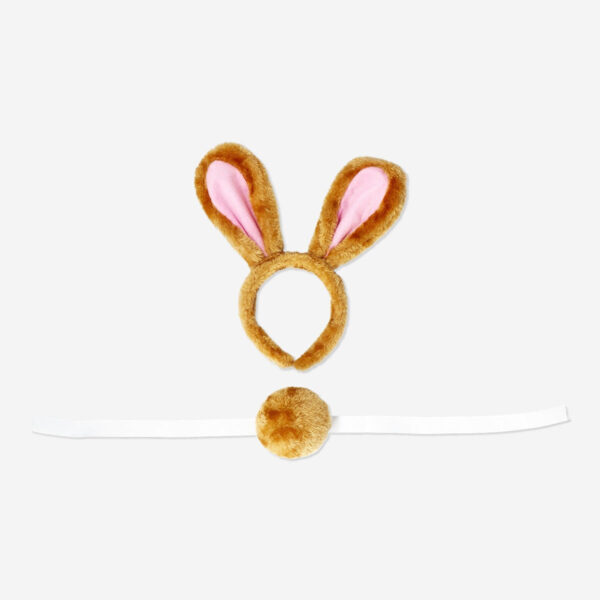 This Easter rabbit costume set, designed for adults, includes a headband with brown and pink ears and a matching tail. Measuring 25 x 25 x 2 cm, the headband paired with the bunny tail is the perfect accessory for an Easter egg hunt or any springtime celebration. With this set, you can easily add a playful touch to your party attire and hop into the holiday spirit.