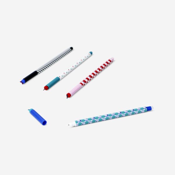 Brighten up your writing routine with this set of four erasable gel ink pens. Each pen features a unique and colourful design, bringing a playful touch to your stationery essentials. The smooth gel ink glides easily across the page, while the built-in eraser lets you make quick corrections without smudging. These multi-coloured pens measure 1 x 18.2 cm and are perfect for note-taking, journalling or adding detail to planners. Whether at school, home or the office, they combine practicality with a fun twist. With four distinct patterns, this set is ideal for anyone who enjoys writing with both flair and flexibility.