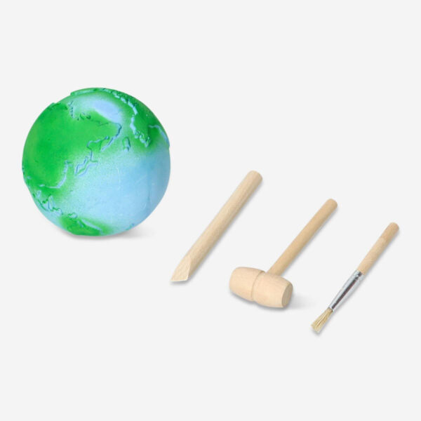 Release your curiosity, have fun, dig and find the 5 hidden stones in the earth. The excavation kit comes with an excavation block and a brush, sticker and hammer made from FSC-certified wood. The excavation block measures 7 cm diameter.
