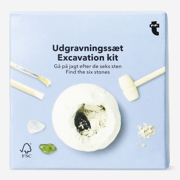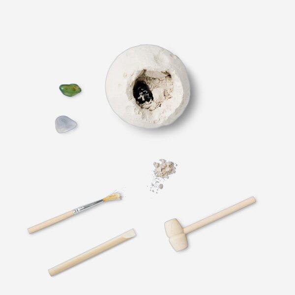Uncover hidden treasures with this moon excavation kit, designed for those who love to dig and discover. The gypsum block measures 7 x 6,7 x 7 cm and contains real stones waiting to be revealed. Use the included wooden tools to carefully chip away and unearth the hidden gems, bringing the excitement of space exploration to life. A great activity for those curious about geology and the wonders of the moon, this kit provides a hands-on experience of excavating and discovering natural elements. A fun addition to any collection of interactive and creative toys.