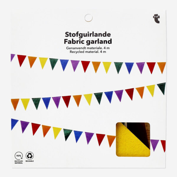 Deck out your celebration with this vibrant 4-metre long fabric garland, featuring small colourful flags made of recycled polyester. It’s a reusable choice that’s sure to add a festive flair to any event, from parties to parades. Bright, cheerful, and full of spirit!