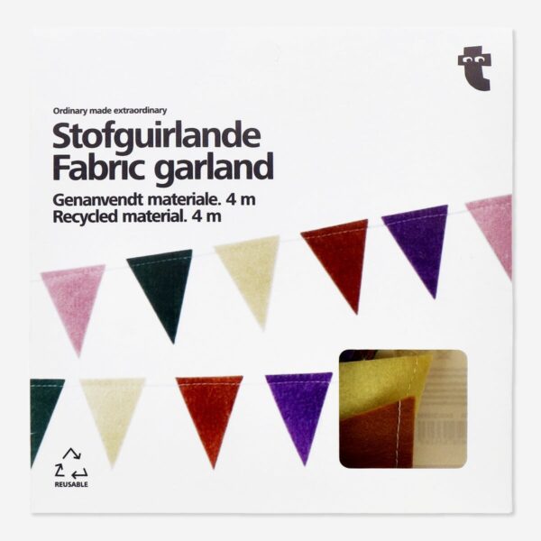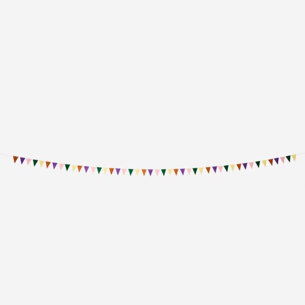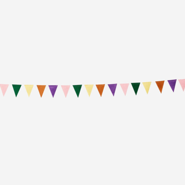 Deck out your space with our reusable fabric garland, stretching a full 4 metres. It’s adorned with charming small flags in solid colours, made from 100% recycled polyester, with a sturdy cotton string. This reusable garland is perfect for any celebratory backdrop, adding a splash of colour and sustainable style to your party décor.