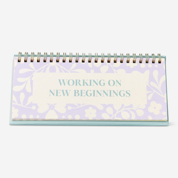 Brighten up your workspace with this floral desktop sign, measuring 12.3 x 20.5 cm. Featuring the motivational message “Working on New Beginnings,” this multi-coloured sign is a perfect addition to your office supplies. Designed for desk personalisation, it can easily be displayed on your desk or shelf, adding a touch of inspiration and style to your daily routine. Its compact size makes it ideal for smaller spaces while the spiral-bound design allows it to stand securely. Whether used for signage or to add a bit of positivity to your day, this floral desk sign is a charming way to personalise your workspace.