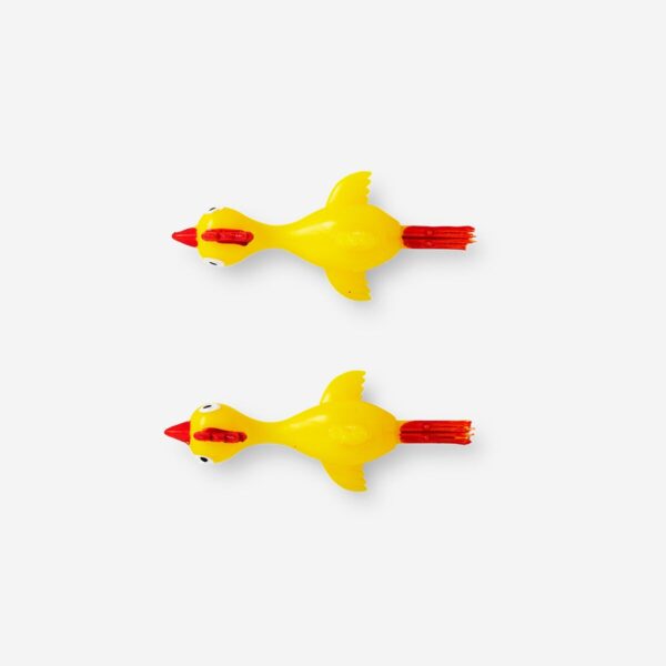Bring excitement to your Easter festivities with this set of two shooting chickens. Made from plastic in a bright yellow colour, each chicken measures 10.5 x 2.5 x 4.5 cm, making them perfect for fun and interactive play. Simply pull back the chicken and let it fly for endless laughs and entertainment. Ideal for holiday gatherings, these playful toys add a whimsical touch to any Easter celebration. Use them as party games, festive favours, or delightful surprises for kids and adults alike. Whether for indoor or outdoor fun, these shooting chickens are a fantastic way to create cheerful memories during the holiday season.