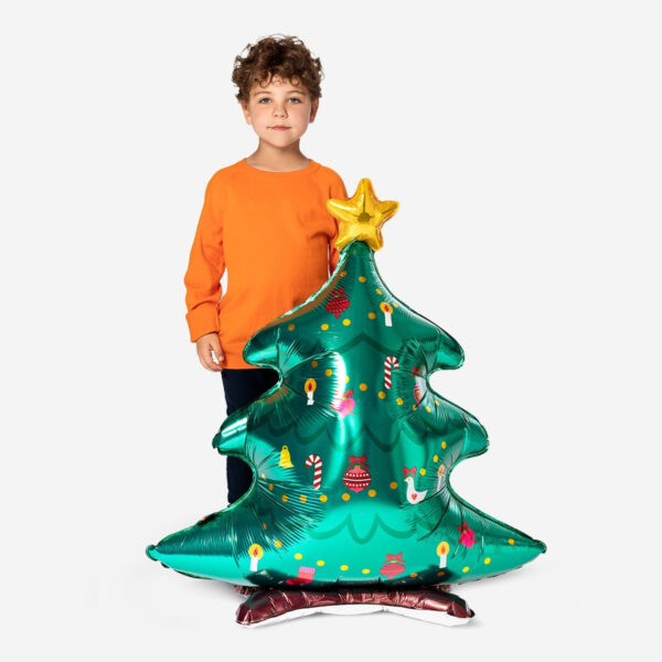 Festive Christmas tree foil balloon that can stand. Measures 80 cm in height.
