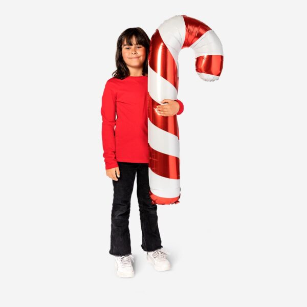 Candy cane foil balloon. Suitable for helium. Measures 100 cm in length.