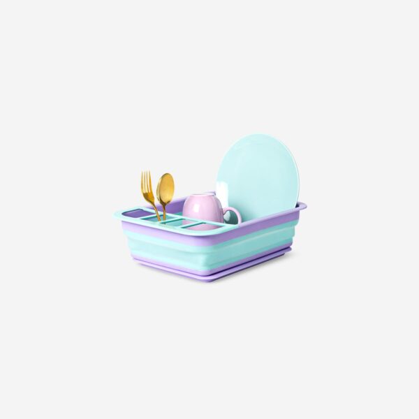 Save space without sacrificing function with this colourful foldable dish drainer, perfect for compact kitchens or everyday convenience. Made of plastic and measuring 23,1 x 27,5 x 1,5 cm when folded, it expands easily to hold dishes, cutlery and more while drying. With a maximum weight capacity of 3 kg, it offers practical support for plates, bowls and glassware after washing. The structured compartments help keep everything organised, and the bright multi-coloured finish brings a cheerful touch to your countertop. This drying rack folds down flat when not in use, making it easy to store in a drawer or cupboard, a smart solution for modern kitchen routines.