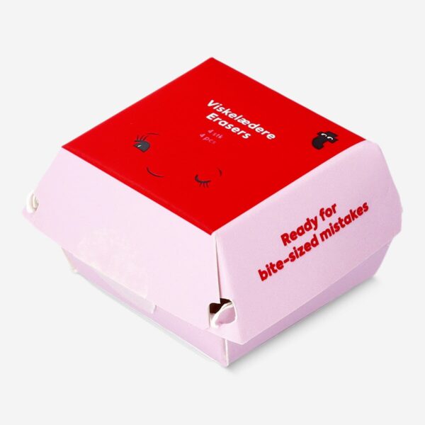 Add a fun twist to your school supplies with these food-themed erasers. This quirky set includes four small erasers shaped like popular drinks, all packaged in a playful burger box. Each eraser measures around 1.8 x 3.5 cm, making them the perfect size for fitting in pencil cases or on desks. Ideal for students who love unique stationery, these foodie erasers not only make correcting mistakes more enjoyable but also add a dash of whimsy to your daily routine. A great addition to any collection of school or office supplies