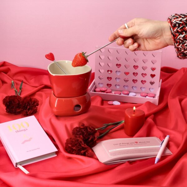 Enjoy some light-hearted competition with this four in a row game, Valentine’s edition, featuring a love-themed twist. Made from wood and measuring 22.6 x 3.4 x 14.3 cm, this romantic board game comes with heart-shaped holes and sweet words on each game piece, adding extra charm to the classic gameplay. Take turns dropping pieces and see who can connect four first while enjoying the playful love messages. Ideal as a Valentine’s gift or a fun couple’s challenge, it brings a bit of romance to your game nights. Perfect for sharing laughter and creating special memories with your loved one.
