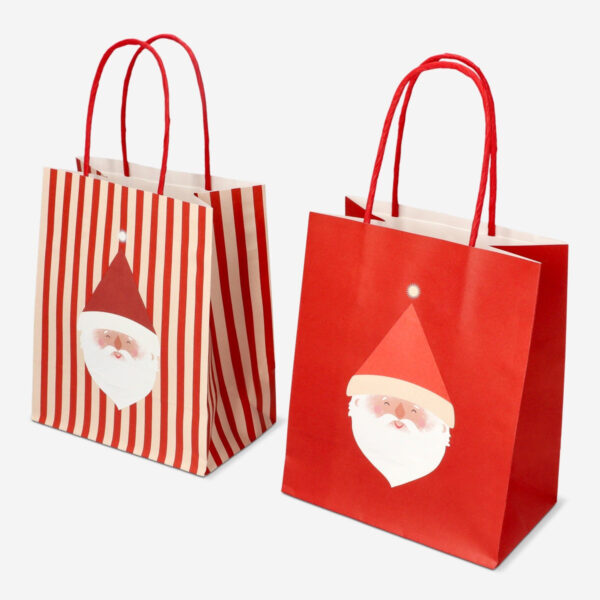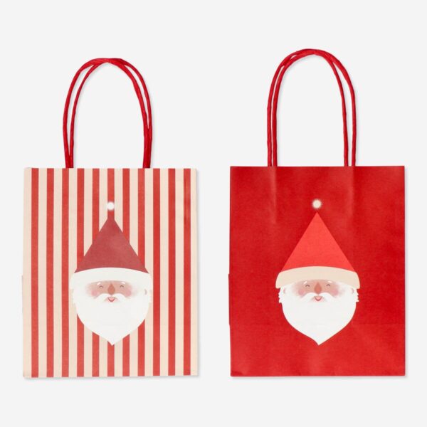 Enhance your gift-giving with the set of 2 red Santa gift bags. Each bag measures 15 x 18 x 9 cm and features a cheerful Santa design. These bags are perfect for adding a touch of holiday joy to your presents.