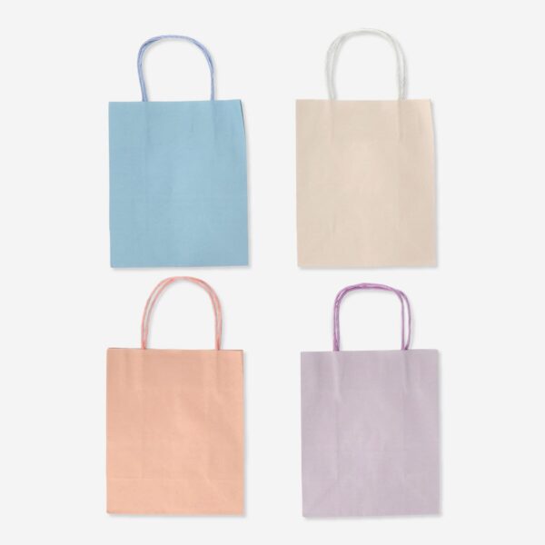 Brighten any celebration with this set of four pastel-coloured gift bags. Each bag measures 15 x 18 x 7 cm and comes in a gentle hue, perfect for presenting gifts with a touch of soft elegance. Ideal for any occasion, these charming bags are not only practical but also enhance your gift-giving with a serene, inviting look.
