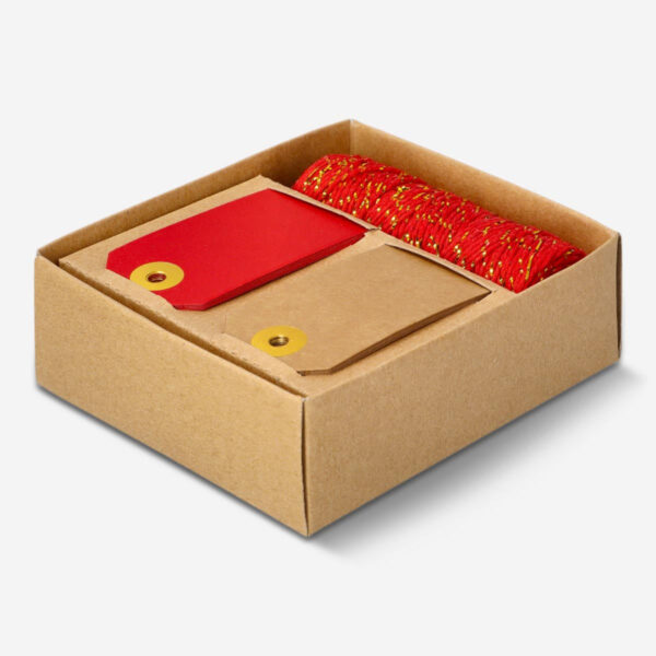 Elevate your gift-giving game with our delightful festive gift decoration kit. Included are 14 paper gift tags and a generous 50-meter cotton ribbon, perfect for adding a touch of elegance to your presents. Presented in a compact 12.5 x 11 x 4 cm box, this set is designed to bring a blend of red and gold magic to your holiday wrapping.