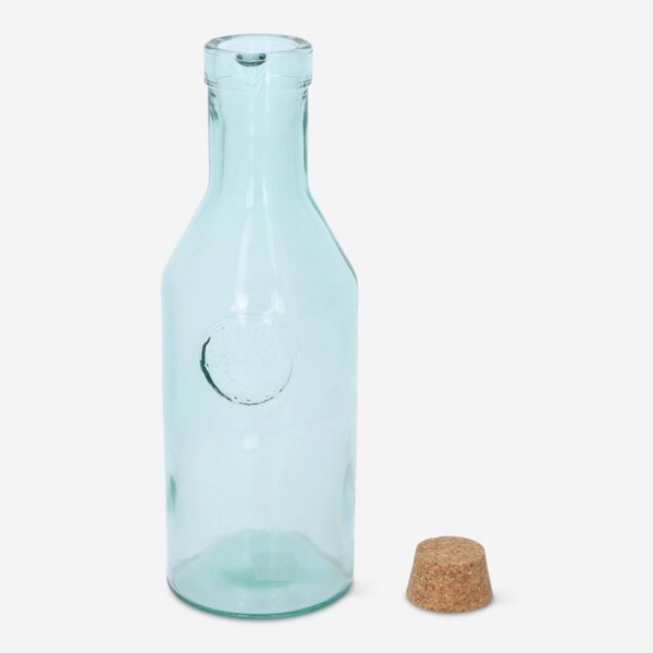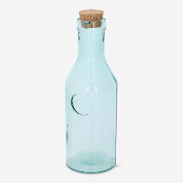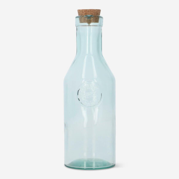 Meet our new glass bottle made from recycled glass. It measures 9.5 x 28 cm and can hold a capacity of 1.2 l, making it the perfect addition to your kitchenware. Featuring a bamboo lid, this jug is suitable for food and storing liquids. This bottle is also dishwasher-safe, making it convenient for everyday use, but please note that only the glass is dishwasher safe and the bamboo lid should be hand-washed.