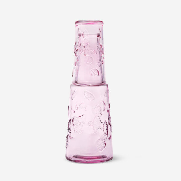 Add elegance and practicality to your kitchen with this glass bottle and matching drinking glass set. The set includes a 770 ml glass bottle with a sleek design and a convenient glass that fits perfectly on top, doubling as a lid. Measuring 9.4 x 25.1 x 9.4 cm, it is ideal for serving water, juice, or flavoured drinks at home or on the go. Crafted entirely from glass, this two-piece set is both stylish and functional. The bottle is suitable for beverages up to a maximum temperature of 70°C. Whether used at the dining table or kept bedside for convenience, this glass set combines simplicity and charm to elevate your drinking experience.