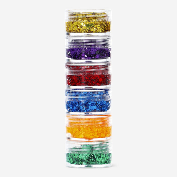 Shine bright at any event with this glitter set for hair and body, perfect for adding a touch of sparkle to your look. The set includes six vibrant colours in 5g jars, giving you endless possibilities for creative and bold designs. Measuring 14×1.8×12 cm, this compact set is easy to carry, making it ideal for festivals, pride events, or parties. Packaged in a paper box, the glitter is suitable for both hair and body application, allowing you to customise your style effortlessly. Whether you are enhancing your makeup or creating eye-catching accents, this glitter set is a fun and festive addition to your look.