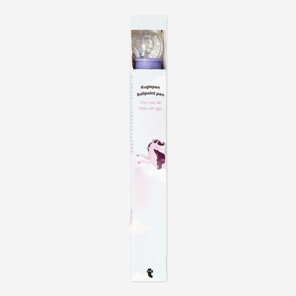 This glittery unicorn ballpoint pen is a magical addition to your stationery. Made from plastic, this purple pen measures 3 x 22.7 x 3 cm. It features a charming unicorn inside a glitter globe, adding a touch of sparkle to your writing experience. Filled with black ink, it is perfect for notes, drawings, and everyday writing tasks. The enchanting unicorn design makes it a fun and practical accessory for school, work, or home. Elevate your writing with this whimsical and glittery unicorn ballpoint pen, combining functionality with fantasy.