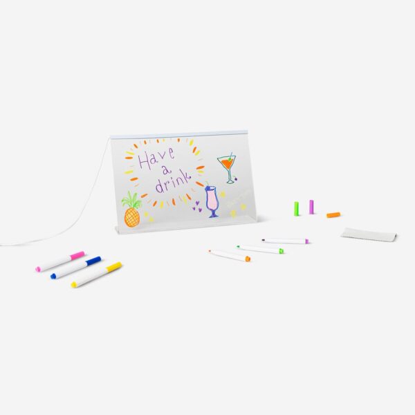 Get creative with this glowing drawing board, a fun and interactive way to express ideas, notes, or artwork. Featuring a transparent surface, this drawing screen with light illuminates your designs, making them stand out beautifully. Measuring 29.8 cm in width, 20.6 cm in height, and 6.3 cm in depth, it is compact yet spacious enough for sketches and messages. Ideal for home, office, or parties, it adds a unique touch to any setting. The board comes with colourful markers, allowing for vibrant designs that glow when lit. Perfect as a decorative sign, memo board, or creative tool, this gadget blends functionality with a stylish and modern look.