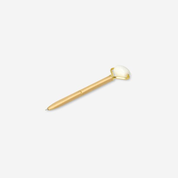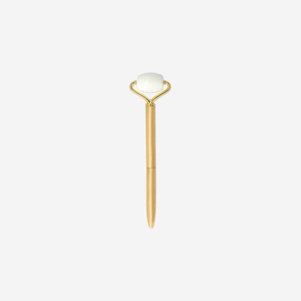 Add a touch of glamour and relaxation to your stationery essentials with this gold ballpoint pen featuring an integrated facial massager. Measuring 3,8 x 14,4 x 1,9 cm and crafted from plastic, this multifunctional piece is as practical as it is eye-catching. The smooth ballpoint delivers consistent black ink, ideal for everyday writing tasks, while the facial roller at the top allows for a quick refresh between meetings or study sessions. Its sleek gold design and innovative dual-purpose function make it a standout addition to any desktop. Whether used for jotting notes or a brief moment of self-care, this pen with facial roller blends style and utility in one accessory.