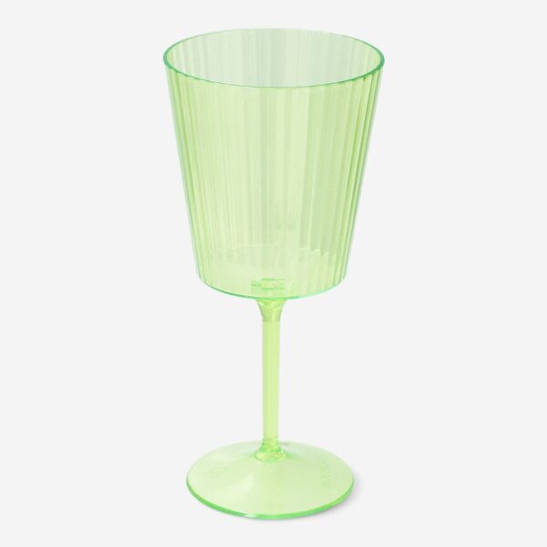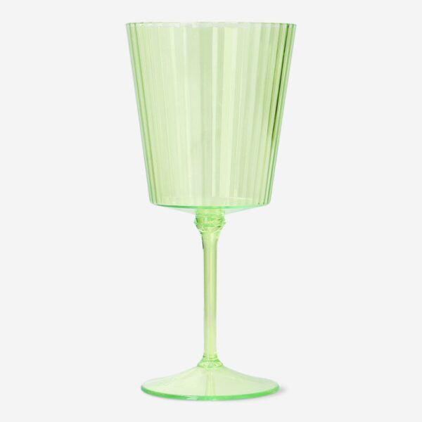 Enjoy your favourite drinks in style with this elegant green plastic wine glass. Designed for both indoor and outdoor use, it adds a sophisticated touch to any occasion while offering the convenience of a lightweight and shatter-resistant material. Measuring 19 cm in height with a 9 cm diameter, it is the perfect size for serving wine, cocktails, or other refreshing beverages. The ribbed texture and rich green colour create a timeless look, making it ideal for garden parties, picnics, or casual gatherings. Made from plastic, this wine glass is suitable for food use and easy to clean. A practical and stylish addition to any drinkware collection.