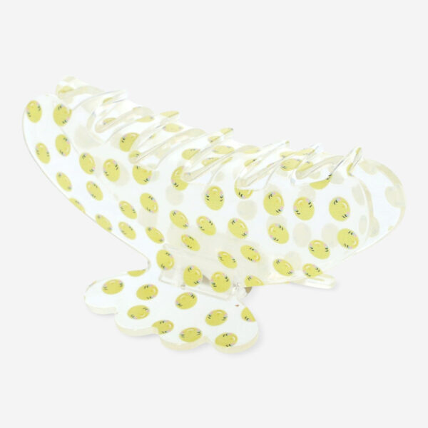 Elevate your personal style with our hair clip, measuring 4 x 8.2 x 3.9 cm. This transparent hair accessory features delightful moodies in yellow, adding a touch of personality to your hairdo. It’s the perfect addition to your personal care and hair accessory collection. Express yourself with flair and enhance your look with this creative and practical hair clip.