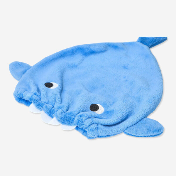 Introducing our shark-themed hair towel! Made of soft and 47% recycled polyester, this blue towel features a playful shark design that adds some fun to your hair care routine. With a generous size of 44 x 37 cm, it’s perfect for wrapping up wet hair after a shower or swims. Say goodbye to drippy hair and hello to cute and functional style!