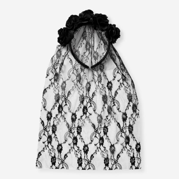 Headband with veil. Measures 25 cm in length. Available in more designs.