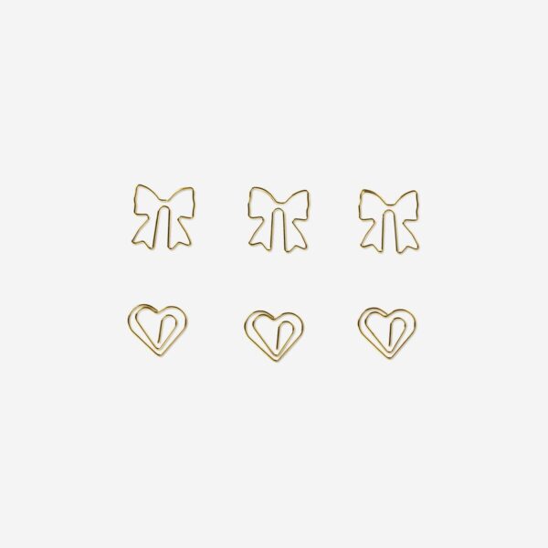 Add a decorative flair to your paperwork with this set of hearts and bows paper clips. Featuring six multi-coloured pieces in charming heart and bow shapes, these clips are a stylish way to organise notes, files or planners. Whether used at work, school or home, they bring a bit of personality to your everyday office supplies. Perfect for marking pages or keeping important papers together, they also make a sweet little gift for stationery lovers. Lightweight and easy to use, this set turns even the most routine tasks into something a bit more joyful. A lovely blend of function and fun for any organised space.