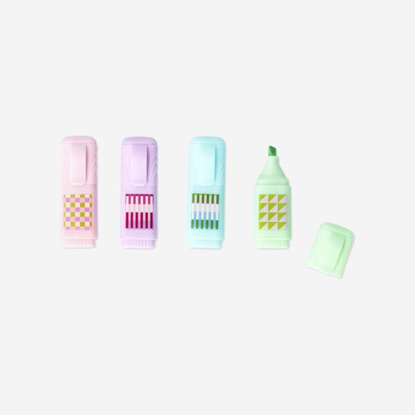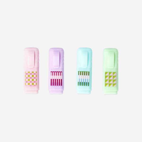 Add a splash of colour to your study or work routine with this set of four highlighters. Featuring a compact and portable design, each highlighter measures 3 x 7.5 x 2 cm, making them ideal for carrying in your pencil case or bag. The set includes multi-coloured barrels with eye-catching geometric patterns that add a fun touch to your stationery collection. These highlighters are perfect for marking important notes, highlighting key information, or organising your tasks. Crafted from plastic, they provide smooth and consistent ink flow. Whether for school, office, or home use, these highlighters are practical and stylish, making them an essential tool for your stationery needs.
