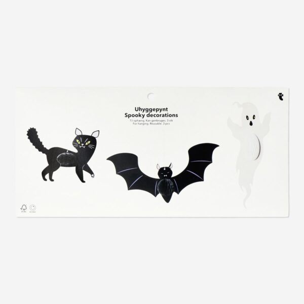 Enhance your Halloween decor with these charming honeycomb Halloween decorations. This set includes three reusable spooky items featuring a ghost, bat, and black cat. Each piece is crafted from cardboard with delightful honeycomb fold-out details, making them perfect for adding a touch of frightful fun to your home. The ghost decoration measures 13.3 x 31 x 0.3 cm, ideal for creating an eerie atmosphere. Easy to hang and reuse, these decorations are perfect for Halloween parties and haunted houses. Add these spooky items to your collection for a festive and haunting celebration.