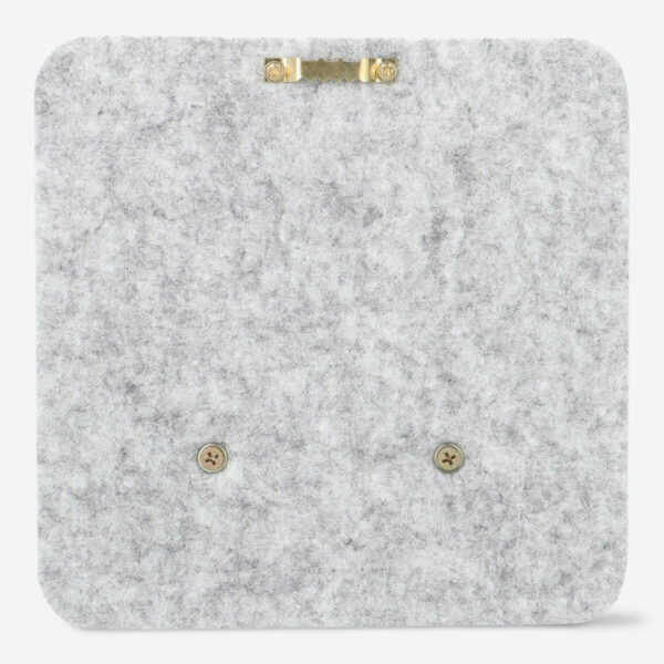 Decorate your home with the nice felt board with hooks and hang keys, jewellery or light clothing. The felt board with hooks are made of recycled polyester, wood and metal and measures 20 x 20 cm. Available in different designs.