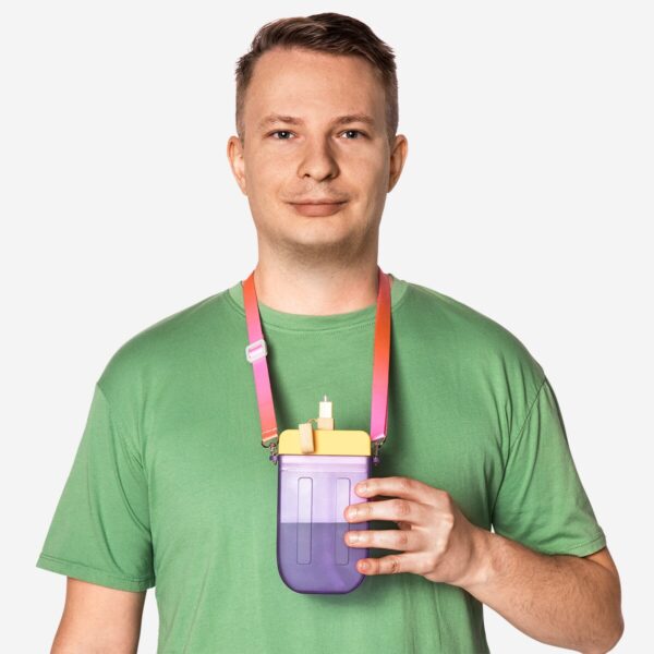 Add a playful touch to hydration with this ice cream shaped drinking bottle with carrying strap, designed for convenience and style. With a capacity of 330 ml, it is ideal for enjoying your favourite cold beverages. Made from plastic, the bottle measures 10.8 x 20 x 4.2 cm and features an adjustable carrying strap for on-the-go ease. The unique ice cream-inspired design adds a fun element to your daily routine. Dishwasher safe and suitable for food, this bottle can safely hold liquids up to 40°C. Whether at school, work, or outdoors, this bottle is a charming way to stay refreshed. Perfect for everyday use and as a delightful gift option.