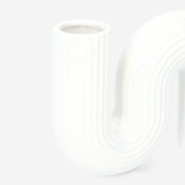 Transform your home ambiance with this unique U-shaped iridescent vase, perfect for showcasing flower arrangements and boosting your decor. Crafted from ceramic, this white vase measuring 16.9 x 12.7 x 4.8 cm sparkles with a lustrous sheen that catches the light beautifully, making it an ideal centerpiece for any space. Enhance your home’s aesthetic with this enchanting decor piece today.