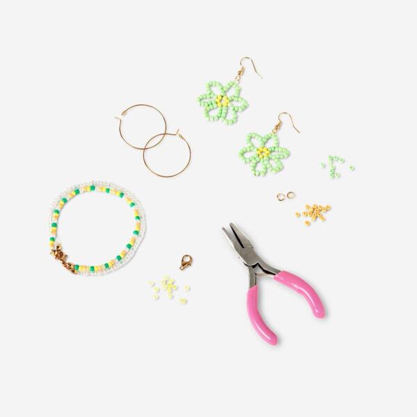 Create your own stunning accessories with this versatile jewellery kit with beads. Housed in a plastic box, measuring 10,1 x 18,5 x 2 cm, this all-in-one set includes an array of vibrant, multi-coloured glass beads, letter beads, and essential tools to help you design necklaces, bracelets, or earrings. Ideal for both beginners and experienced crafters, this DIY jewellery kit sparks creativity and offers endless possibilities for personalised designs. Perfect for crafting gifts or adding a unique touch to your collection, the kit is neatly packed for easy organisation and portability. Dive into the world of handmade jewellery and let your imagination shine with this bead and accessory set.