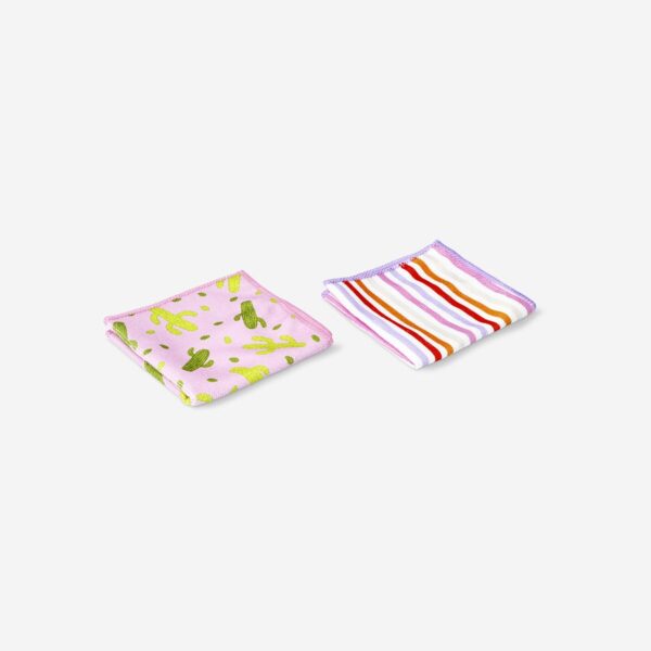 Add a cheerful touch to your kitchen cleaning routine with this set of two polyester cloths, featuring one bold cactus print and one in lively stripes. Each cloth measures 25 x 25 cm, making them the perfect size for wiping surfaces, drying dishes or tackling everyday spills. Soft and lightweight, they are easy to wring out and reuse, helping keep your kitchen neat with minimal fuss. Whether you keep them by the sink or tucked in a drawer, these fun designs bring a little colour to practical tasks. This cloth duo is a simple way to add function and personality to your cleaning essentials.