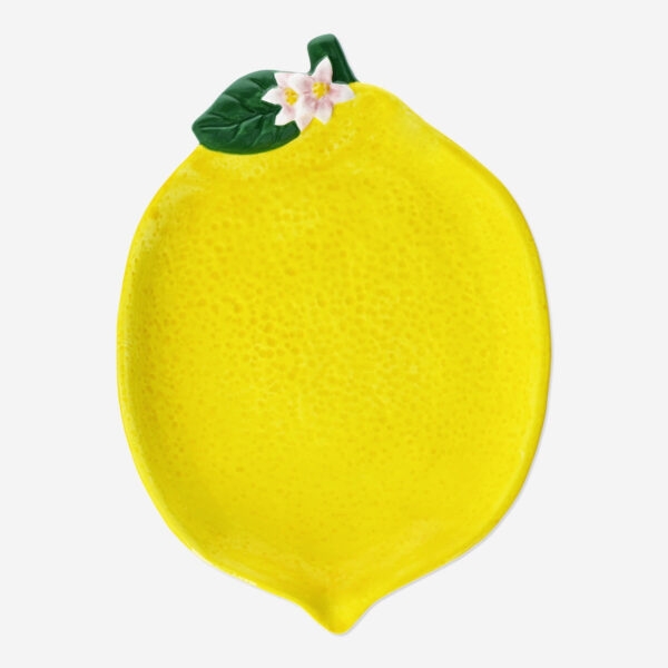 Add a splash of zesty charm to your dining experience with this lemon-shaped serving plate. Crafted from ceramics, the plate features a vibrant yellow colour with green detailing, capturing the cheerful essence of a fresh lemon. Measuring 21 x 2.2 x 15 cm, it is the perfect size for serving appetisers, desserts, or small dishes with a creative twist. Designed for both practicality and style, this plate is suitable for food use, making it an ideal addition to your kitchen tableware. Whether you are entertaining guests or enjoying a casual meal, this delightful lemon serving plate will brighten up your table and make your presentations truly unique.