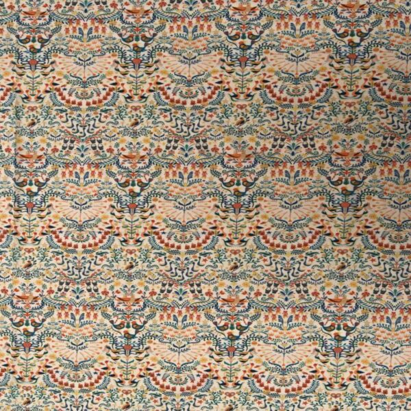 Influenced by folk art, this joyful Arts and Crafts style print is a dazzling representation of the gifts given in the famous Christmas Carol, The Twelve Days of Christmas. Painted in bright watercolours, gifts are intertwined with swirling foliage and scattered stars, imaginatively paying homage to the traditional aesthetic of Liberty design.