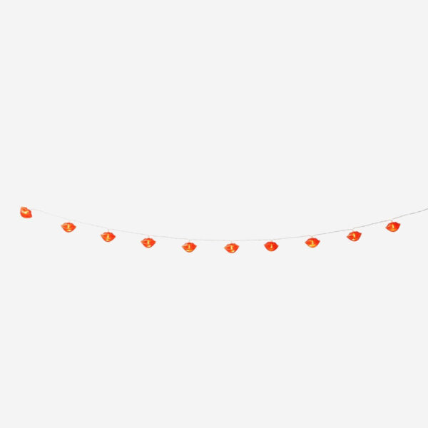 Create cosiness and decorate your home with the beautiful string lights. The string lights have 10 LED lights shaped like red lips that measure 5.5 x 3 cm. The string lights measure 285 cm in full length. The string lights use 2 x AA batteries (not included).