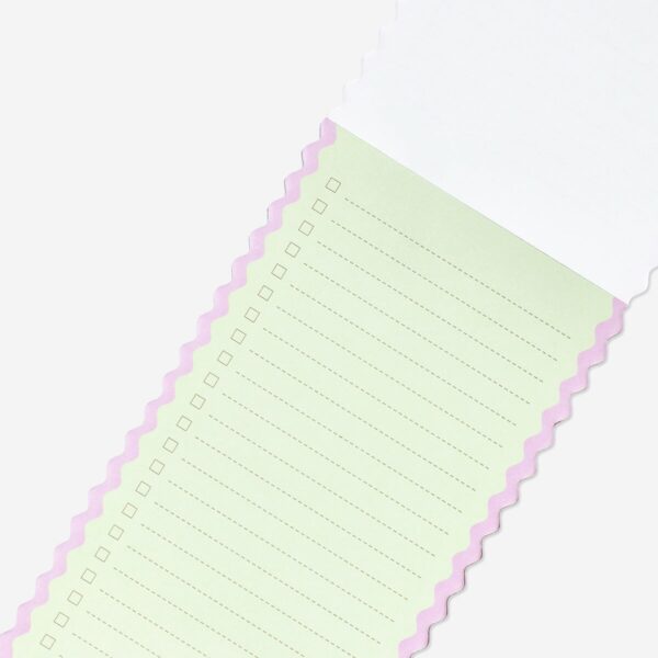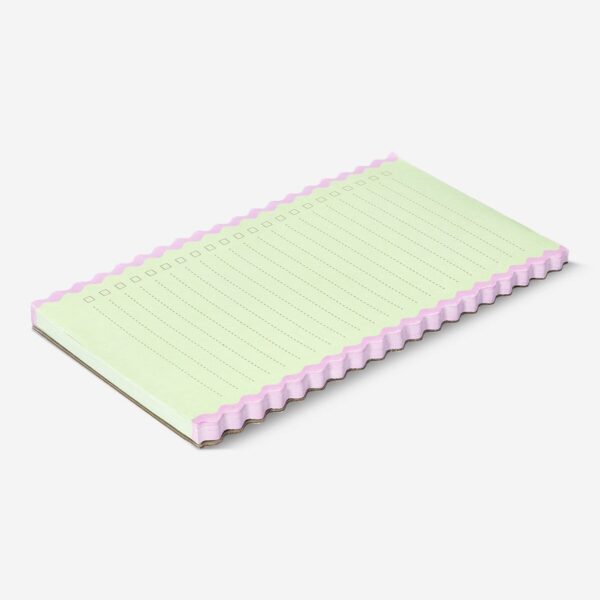 Stay organised with this magnetic checklist featuring charming scalloped edges. Measuring 10 x 18 cm, this multi-coloured notepad is perfect for quick jotting of tasks, to-do lists, or convenient reminders. With its magnetic backing, you can easily attach it to your fridge or any metal surface, ensuring your list is always within reach. This stylish desk accessory also fits neatly into any workspace, adding a decorative touch while keeping your daily plans in order. Whether for home or office use, this checklist is a practical solution for managing your daily tasks efficiently and keeping everything organised in one place.