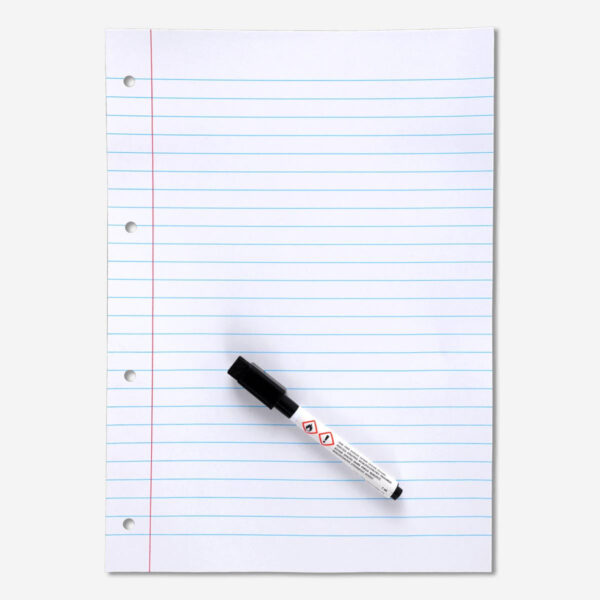Magnetic whiteboard with “lined” paper. Erasable markers included.