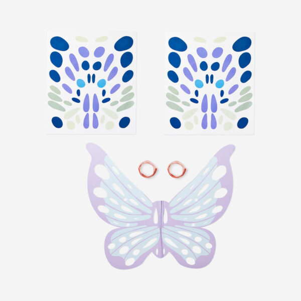 Embrace your imagination with our DIY butterfly wings kit. Inside, you’ll discover a set of multi-coloured butterfly wings made of cardboard, measuring a delightful 45.5 x 52 cm. This kit includes stickers for personalisation, giving you the freedom to craft and decorate your own wings with boundless creative possibilities. It’s perfect for anyone looking to create a unique set of wings and set their creative spirit and imagination free to take flight.
