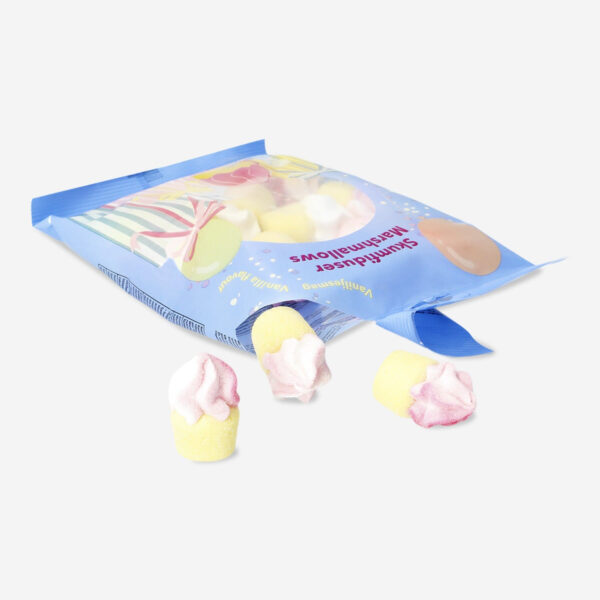 Delight in the soft and sweet treat of these marshmallow cupcakes with a delicious vanilla flavour. Perfect for parties, gatherings, or simply as a tasty snack, this 125 g pack features colourful, cupcake-shaped marshmallows that bring fun and flavour to any occasion. Their light and fluffy texture make them ideal for sharing with friends and family or adding a decorative touch to dessert tables. With their eye-catching multi-coloured design, these marshmallows are as appealing to the eye as they are to the taste buds. Whether enjoyed on their own or used to elevate your favourite recipes, these marshmallow cupcakes are a delightful addition to your soft candy collection. Please note this product may contain traces of soya and milk.