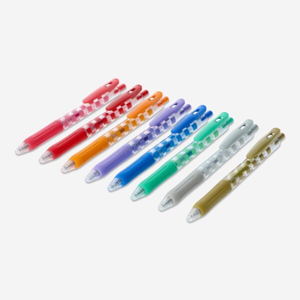 Get creative with our metallic gel pens! This set includes 8 pens in different colours, perfect for adding a pop of shimmer to your artwork, writing, or bullet journaling. The pens have a smooth, comfortable grip and deliver a bold, opaque line. Upgrade your stationery collection with these must-have pens.