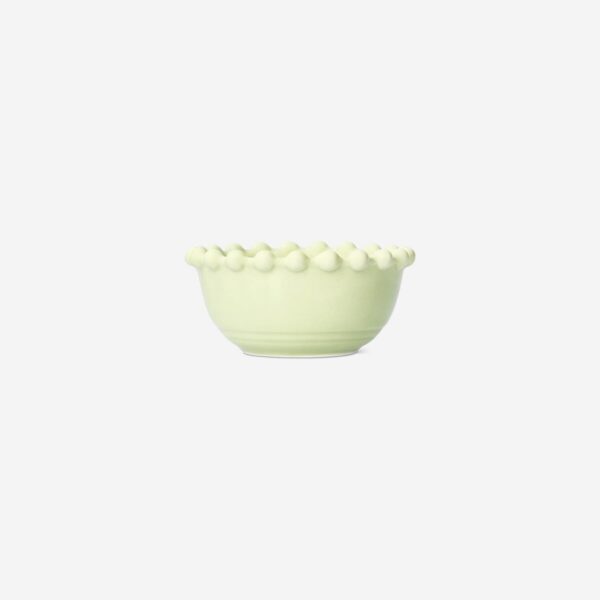 Elevate your tableware with this mini green ceramic bowl, ideal for serving dips, sauces or small snacks. Featuring a distinctive bubble edge design, it adds a playful yet refined touch to any setting. This bowl measures 8.5 cm in diameter and 4.2 cm in height, making it perfectly compact for individual portions or accompanying larger dishes. Made from food-safe ceramics, it is a practical addition to the kitchen, being microwave, oven, freezer and dishwasher safe. Whether used for everyday meals or entertaining guests, this bowl combines functionality with a charming design that fits effortlessly into both classic and contemporary table settings.