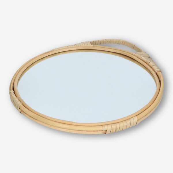 This 30 cm rattan-framed mirror combines natural warmth with minimalist style, measuring 30 x 34.5 x 2 cm. Its brown hue and circular design add a cosy and elegant touch to any wall space. Ideal for bringing depth and light to rooms, this piece marries simplicity with earthy charm to enhance your home.