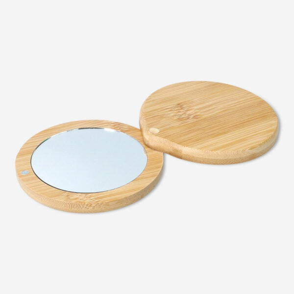 Looking for a pocket-sized mirror that’s perfect for on the go? Look no further than our mirror made of FSC-certified bamboo! This compact and stylish mirror is the perfect accessory for your purse, backpack, or pocket to be prepared for making touch-ups throughout the day. The bamboo frame is both durable and lightweight, making it ideal for travel or everyday use. The mirror features a convenient magnetic closure, ensuring that it stays securely closed in your bag or pocket. The mirror measures 1.5 x 8.5 x 8.2 cm.
