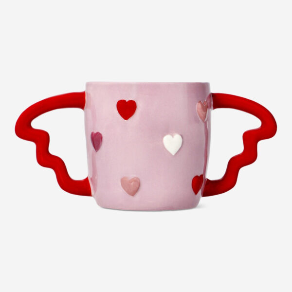 This charming 310 ml mug features a playful design with embossed hearts, perfect for adding a touch of romance to your daily routine. The vibrant red interior contrasts beautifully with the soft pink exterior, decorated with scattered heart patterns. Its unique handles, shaped like red ribbons, offer a whimsical touch, making it an eye-catching piece of tableware. Ideal for both everyday use and special occasions, this mug is microwave and dishwasher safe, ensuring easy cleaning and heating. Whether you are enjoying your favourite hot drink or gifting it to a loved one, this decorative mug is a delightful Valentine accessory. Perfect as a gift item or a fun addition to your kitchen, it adds a dash of love to your morning coffee or tea.