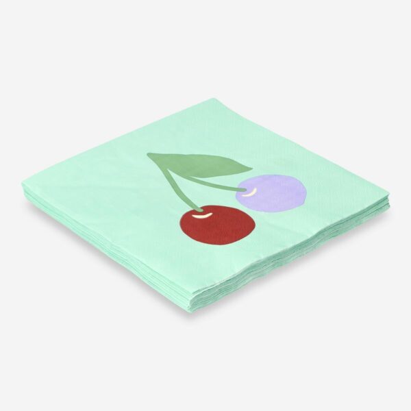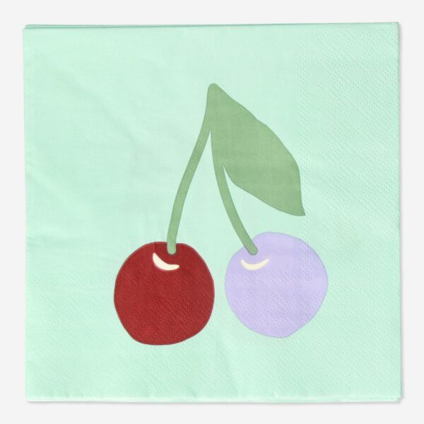 Introducing our green napkins with a delightful cherry motive, perfect for adding a pop of colour and personality to your table setting! Each pack contains 15 napkins, each measuring 16.5 x 16.5 cm, and features three layers of soft paper. Whether you’re hosting a picnic, dinner party, or simply enjoying a meal at home, our napkins are the ideal choice for any occasion. The cherry motive adds a touch of whimsy to your table while ensuring your guests stay mess-free. Get ready to impress your guests with these charming and functional napkins!
